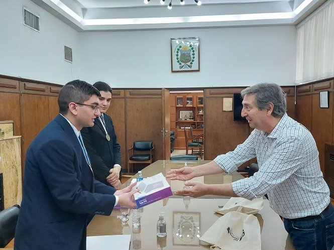El jefe comunal les entregó una distinción por sus logros, además de charlar con ellos sobre su participación en el evento y sobre sus futuros estudios, ya que ambos quieren seguir carreras vinculadas a la ingeniería.