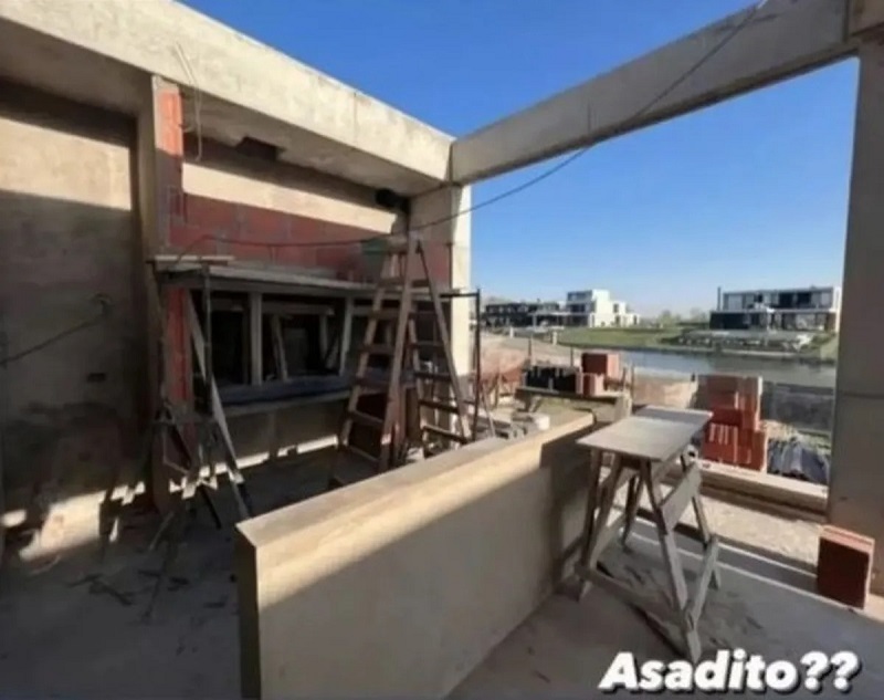 “¿Asadito?”, agregó en otra imagen donde será el quincho que tendrá una parilla para hacer asado. Los obreros se encuentran en plena construcción de la casa y el conductor ya palpita lo que será el resultado final de la obra.