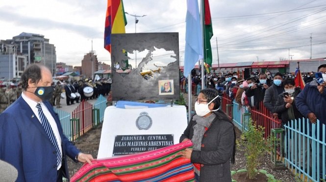 Al mismo tiempo, la Plaza y Jardinera Central “recuerda a los caídos y veteranos del conflicto del Atlántico Sur”, explicó en un comunicado la embajada argentina en La Paz.