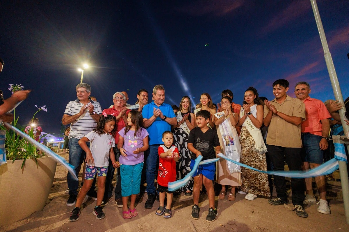 El intendente Omar Félix llegó a la costanera luego de las 20:30, aprovechó para recorrer el predio, charló con vecinos y se ubicó para el comienzo del acto oficial. Antes de iniciar su discurso, solicitó “el encendido” de luces, que fue acompañado de una verdadera ovación. El nuevo espacio quedó perfectamente iluminado con tecnología led, como así también el puente que cruza el Atuel.