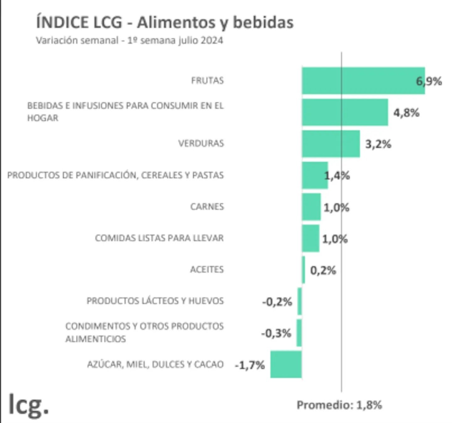 Al comienzo del séptimo mes, se registró un repunte en las remarcaciones y un cuarto de las categorías registraron aumentos, según el relevamiento de la consultora LCG. Cuáles son los productos que más subieron y cuáles bajaron.