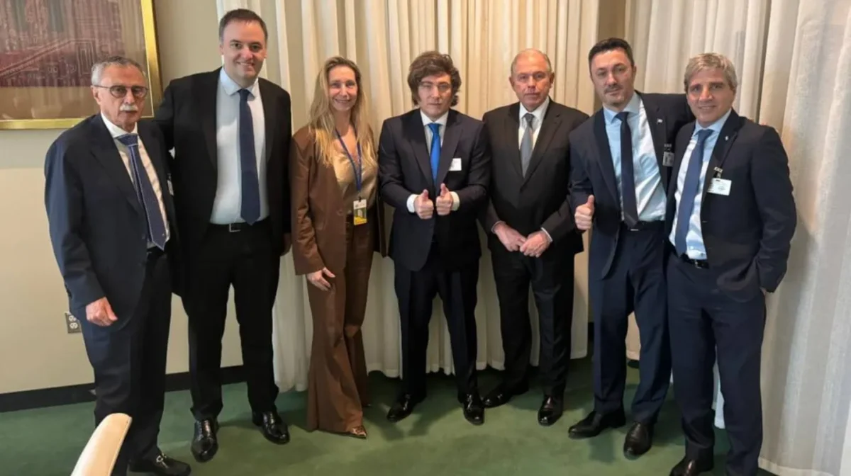 El presidente Javier Milei junto a su comitiva, en la previa a su discurso en la Asamblea General de la ONU. (Foto: Presidencia)