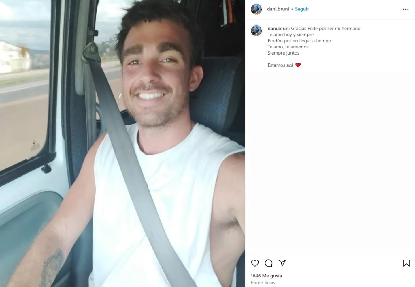 Su hermana, Daniela Bruni, publicó este sábado un sentido mensaje de despedida para su hermano en Instagram. “Gracias, Fede, por ser mi hermano. Te amo hoy y siempre. Perdón por no llegar a tiempo. Te amo, te amamos. Siempre juntos”, escribió junto a una foto. “Siempre juntos, hermano. Descansa en paz, te lo mereces. Te amo”, agregó en una historia donde resumió con imágenes la vida que compartieron.