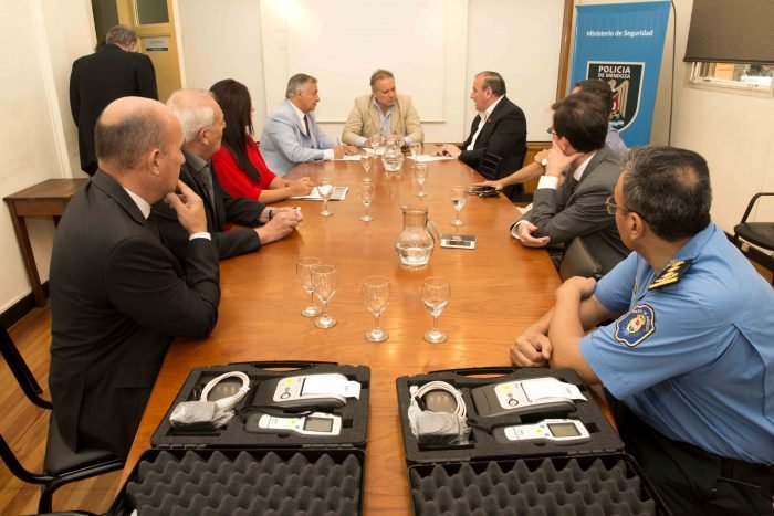 La entrega se realizó luego de la firma de un convenio en el ministerio de Seguridad, donde participaron también el subsecretario de Gestión Federal del a Seguridad, Enrique Thomas y el procurar general de la corte, Alejandro Gulle; el director de Seguridad Vial, Oscar Hómola; el jefe de policial vial, Comisario Ernesto Gómez y el director de Unidad Ejecutiva de Seguridad Vial de la provincia, Hugo Fiorens.