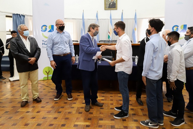 El intendente Emir Félix y el presidente del Colegio de Arquitectos de Mendoza, Hugo Ponce, encabezaron la entrega de reconocimientos a anteproyectos para refuncionalizar la vieja terminal de San Rafael.