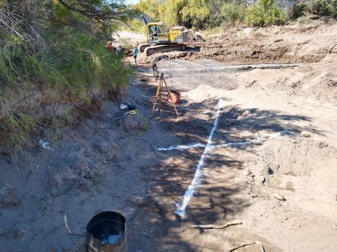Ya se pueden ver obreros y máquinas trabajando en la construcción de una sección de aforo para medir el caudal del río Atuel.