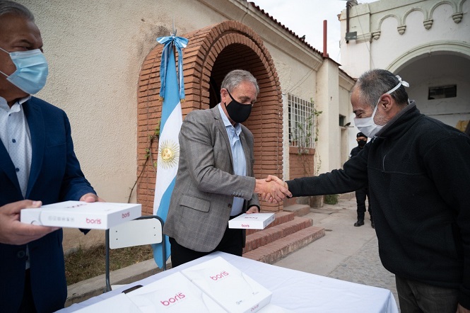El ministro de Seguridad, Raúl Levrino, y el rector de la Universidad Nacional de Cuyo (UNCuyo), Daniel Pizzi, encabezaron el acto realizado en el Complejo Boulogne Sur Mer para entregar dispositivos electrónicos de lectura a estudiantes universitarios en contextos de encierro.