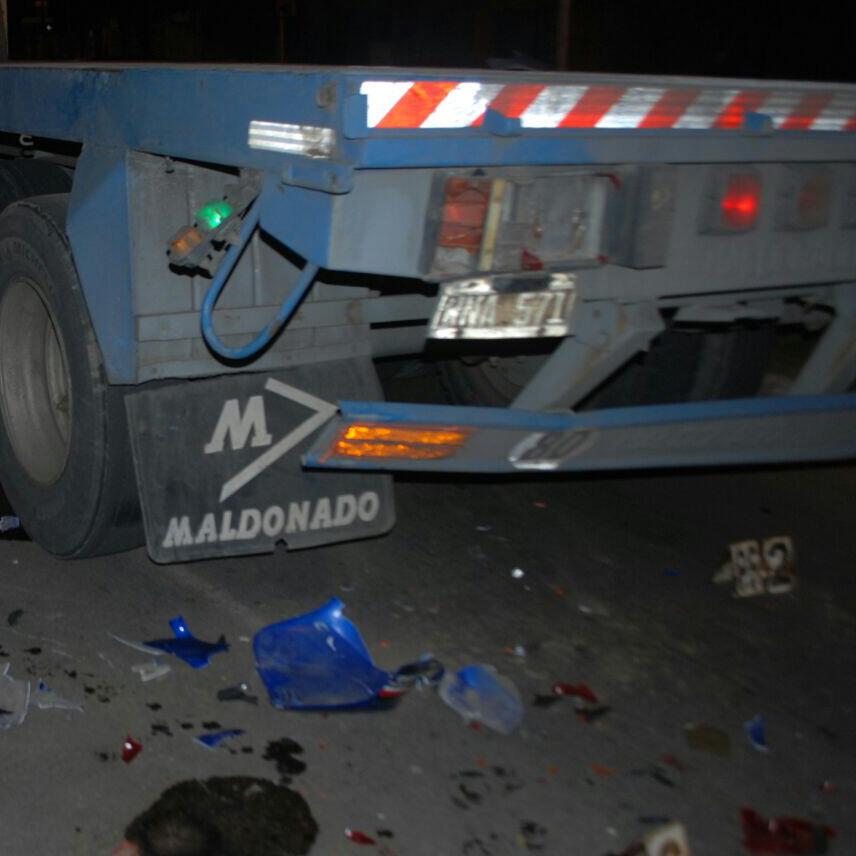Por razones que se tratan de establecer el motociclista colisionó con la parte trasera del camión quedando gravemente herido.