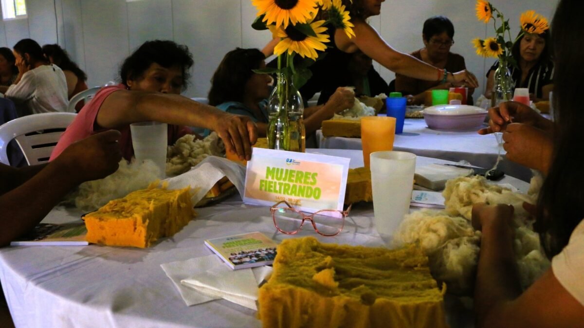 El sábado, en el SUM del distrito Las Malvinas, se realizó el encuentro de “Mujeres Fieltreras”, una propuesta que busca incorporar la técnica del fieltro como alternativa a la producción lanera tradicional, materia prima que veces termina siendo descartada o quemada por falta de mercado.