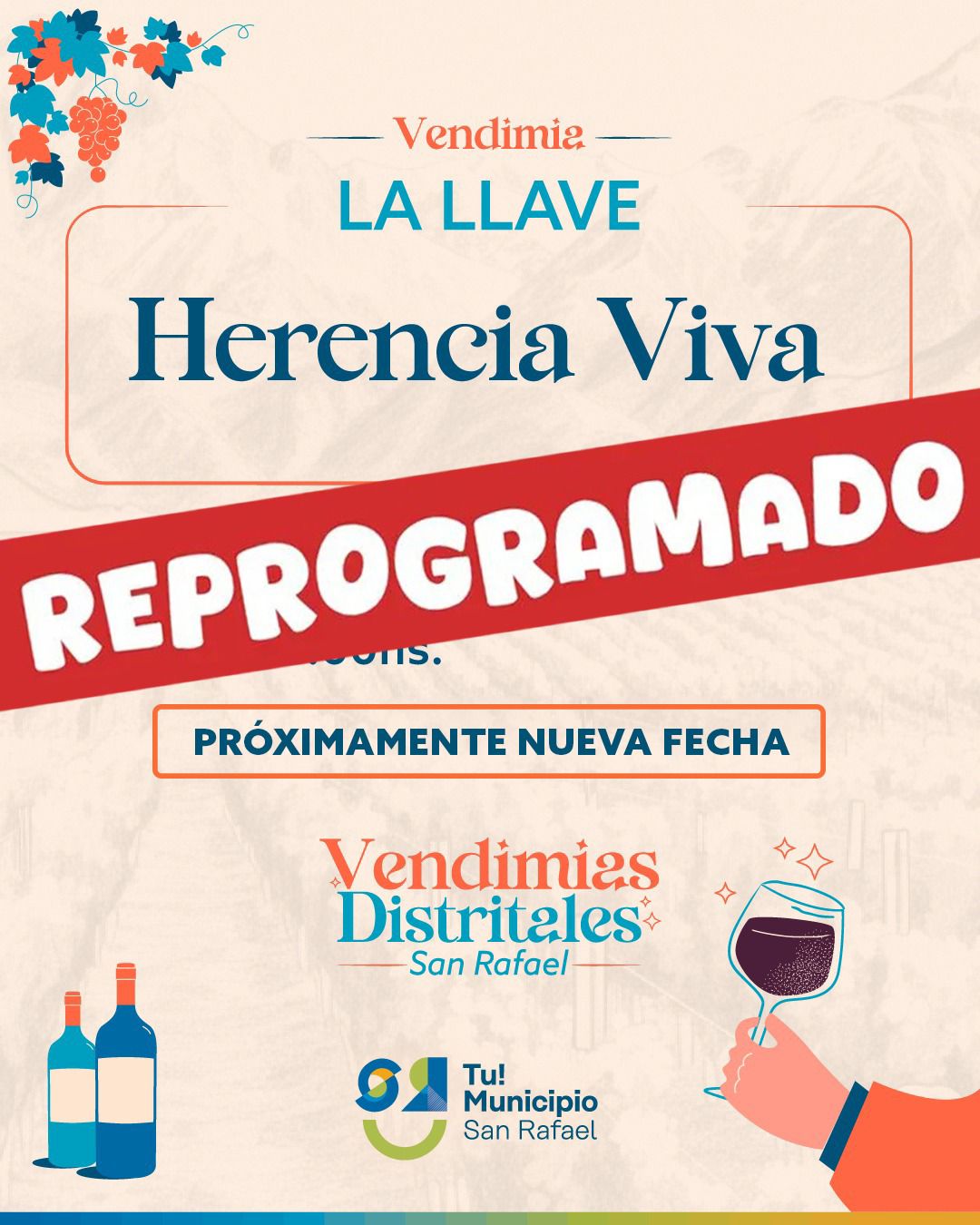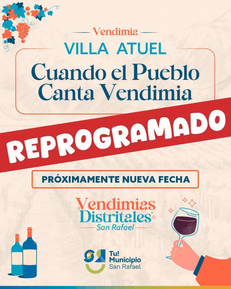 De esta manera los festejos previstos para el viernes en Villa Atuel, el sábado en Rama Caída y el domingo en La Llave serán reprogramadas con fecha a confirmar en los próximos días.