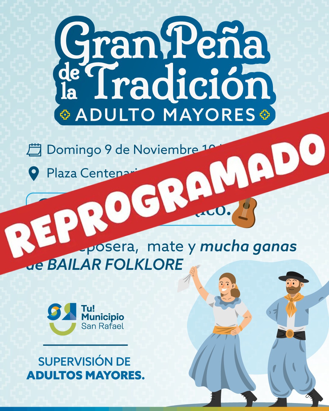 También por cuestiones climáticas se reprogramó la Peña de la Tradición de los Adultos Mayores. La actividad se realizará el próximo domingo 16 en la Plaza Centenario de Villa 25 de Mayo.