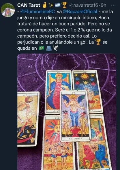 El tarotista se animó a tirar las cartas para Boca vs Fluminense y su pronóstico se volvió viral.