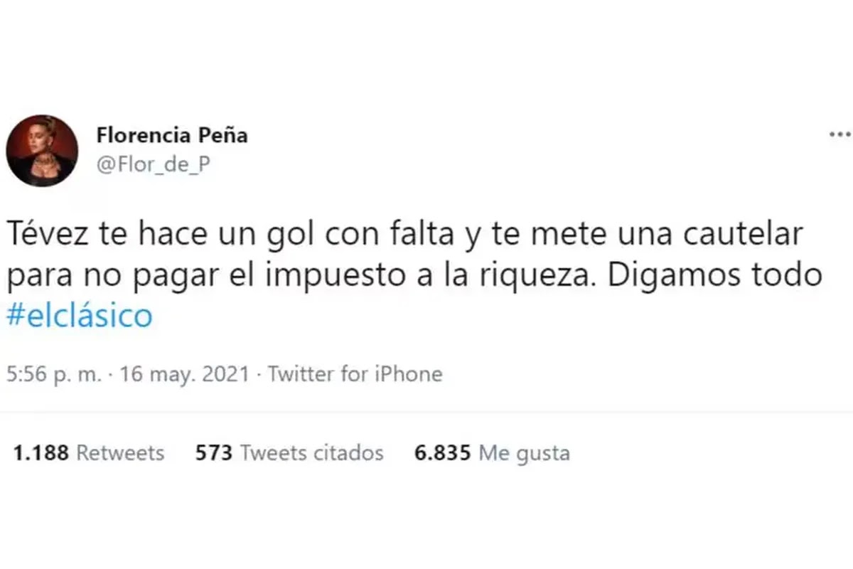Esta no es la primera vez que Peña cruza a Tévez por cuestiones similares a esta. En 2021, la modelo publicó un tuit durante un superclásico entre Boca y River, cuestionando al entrenador por pedir un amparo judicial para evitar el pago del impuesto solidario a las grandes fortunas.