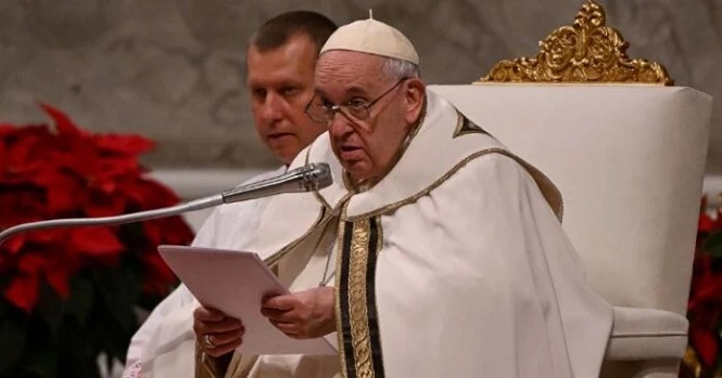 En su mensaje durante la tradicional celebración religiosa en la víspera de la Navidad, el Papa Francisco criticó además la “prisa voraz de poseer y consumir” de la humanidad y pidió una Iglesia al servicio de los pobres.