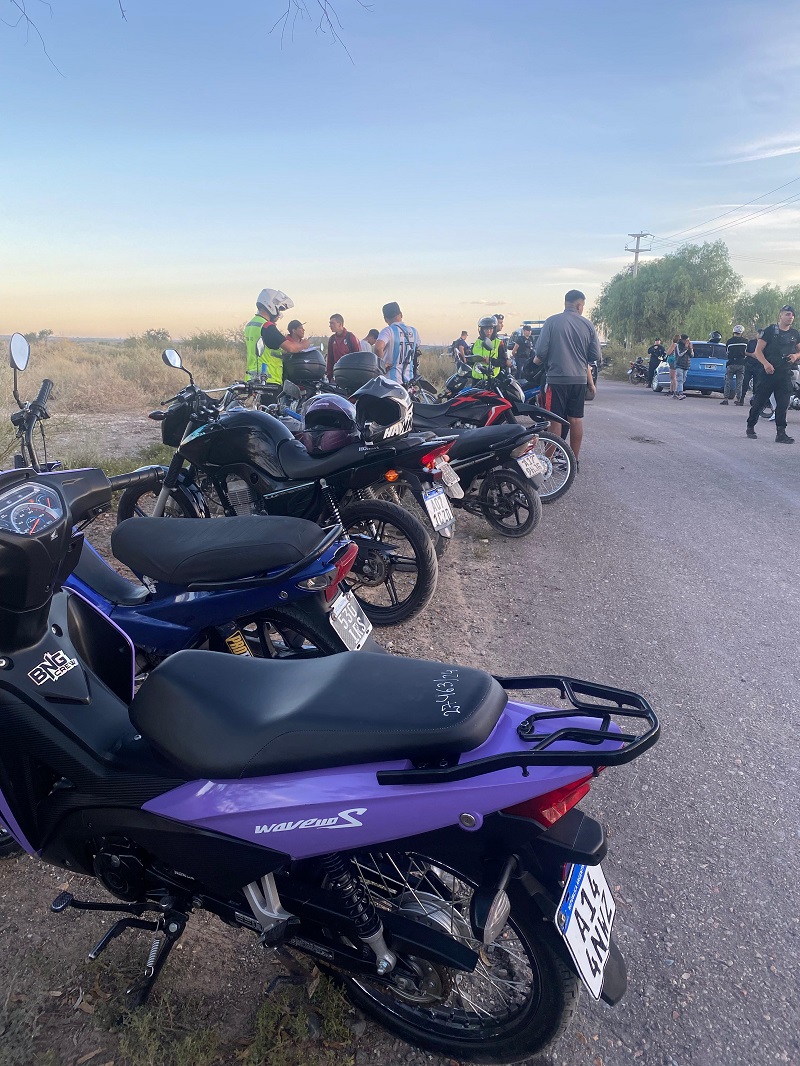 Alrededor de las 17 hs., y con el fin de desalentar la realización de picadas ilegales de motos, y en muchos casos utilizadas para la comisión de delitos, infracción a la ley de tránsito y ley de contravenciones, es que el personal policial, luego de tareas de inteligencia, irrumpieron en la zona y lograron el siguiente resultado.