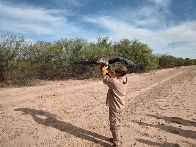 Fue liberada en Ñacuñán el águila encontrada por dos pobladores en mayo del 2021.