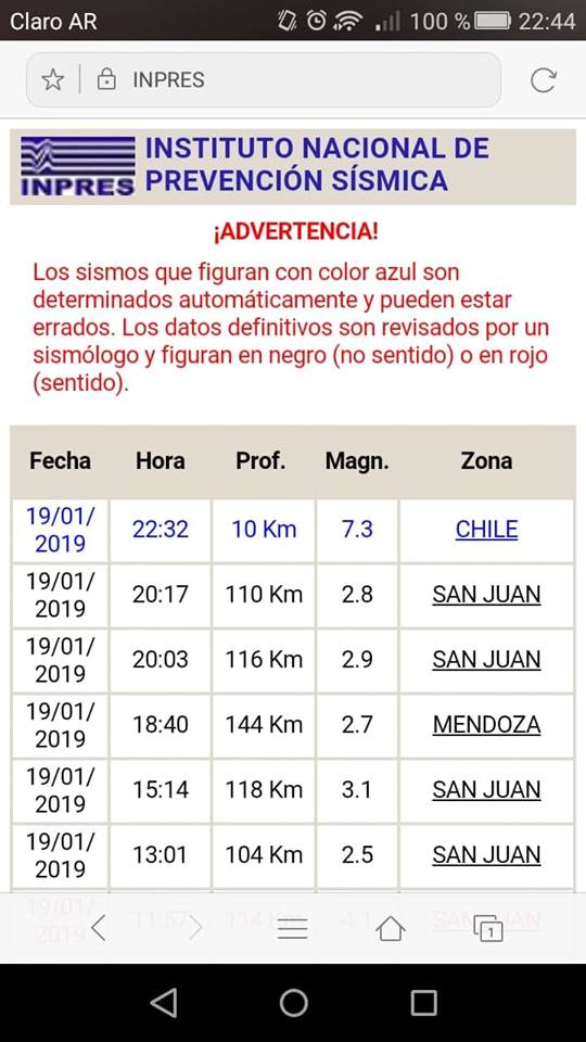 Según el INPRES fue de magnitud 7,3 y desde Sismologia.cl reportan que fue de magnitud 6m7.