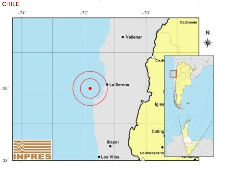 El sismo se produjo en el Océano Pacífico en Chile a las 22:32:46 y fue sentido en Mendoza. Tuvo una magnitud de 7.3 a 10 km de profundidad, fijando su epicentro 356 km al NO de San Juan; 424 km al NO de Mendoza, 45 km al O de Coquimbo. 30.010 Lat. y 71.800 de Long. Informó el Inpres en su página.