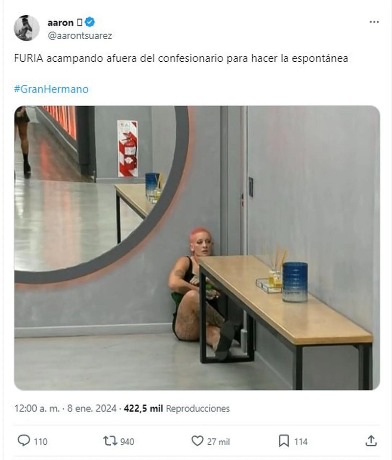 En el momento en que Santiago del Moro anunció que la “abuelita milf” tenía que irse de la casa, Furia salió corriendo y se escondió al lado de la puerta del confesionario. Esta actitud fue celebrada por los seguidores del programa quienes quedaron impactados por la jugada de la influencer deportiva.