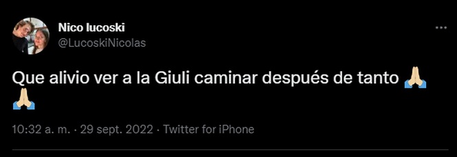 Lo anunció su hermano en redes sociales, y celebró: “Que alivio ver a la Giuli caminar después de tanto”.