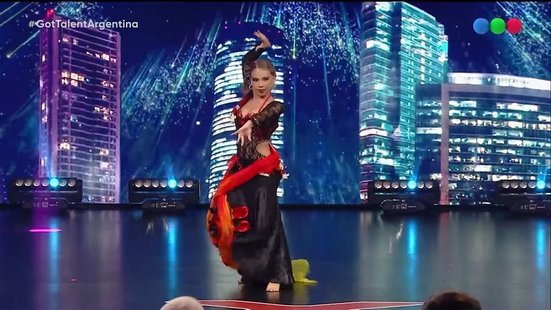 La joven irrumpió en el escenario con varios elementos y una impactante interpretación de danza árabe que cautivó a la mayoría de los miembros del jurado, aunque también recibió algunos consejos constructivos.