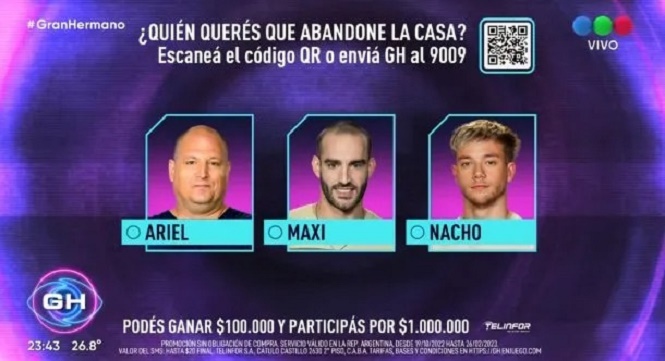 De esta manera, quien dejaría la casa sería Ariel en el mano a mano con Maxi. Nacho sería el primer salvado.