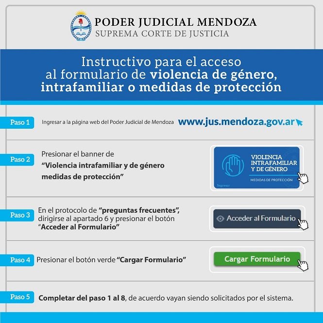Se puede hacer completando un formulario, que se encuentra disponible ingresando en el link http://www.jus.mendoza.gov.ar/web/direccion-de-la-mujer/violencia-intrafamiliar, que tiene un acceso directo en la portada principal del sitio oficial del Poder Judicial de Mendoza.