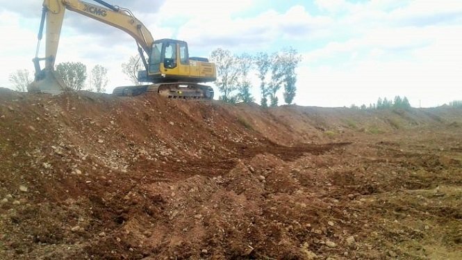 En un frente de obra se trabajó en la apertura del camino de servicio sobre 320 metros lineales y 3 metros de ancho de la margen derecha del zanjón, mientras que por otra parte se montó un terraplén de defensa de un metro y medio de altura por tres metros de ancho.