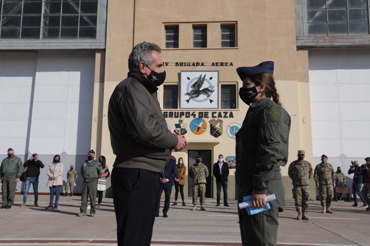 El ministro de Defensa, Agustín Rossi, presenció ayer en Mendoza el Vuelo Solo inaugural de la primera mujer piloto de aviones de combate de la Fuerza Aérea Argentina. Además, Rossi quien fue recibido por el gobernador Rodolfo Suárez supervisó el trabajo de ayuda humanitaria que están realizando las Fuerzas Armadas en esta provincia, ante la crisis sanitaria por el Covid-19.