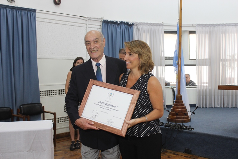 En el recito de sesiones del Concejo Deliberante, estuvo Jorge Quintana acompañado por familiares, amigos y colegas, para recibir las tres distinciones de parte de los nombrados funcionarios. El locutor se mostró sumamente complacido por el gesto de todos. “El cariño y el respeto de la gente es un capital inconmensurable”, dijo. Por otra parte, aclaró que nunca trabajó para recibir aplausos ni elogios, sino que lo hizo por la necesidad de ganar el pan dignamente, por él y por su familia.