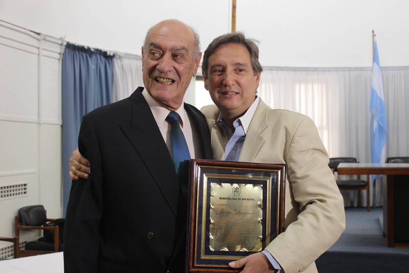 Uno de los locutores más queridos y respetados de San Rafael (y de Mendoza), Jorge Quintana, recibió distinciones de la Legislatura Provincial, del Concejo Deliberante local y una tercera por parte del intendente Emir Félix. Es por su aporte invaluable a la cultura local.
