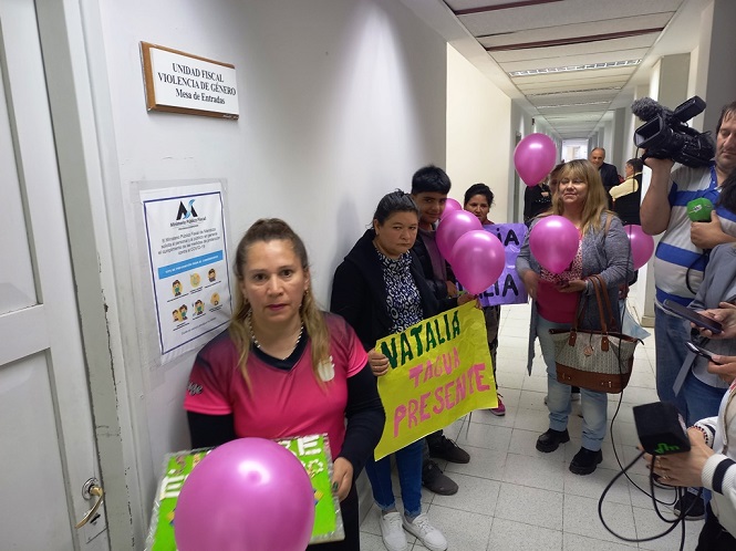 Durante la mañana de este jueves, se llevó a cabo un nuevo pedido de “justicia” a un año del femicidio de Natalia Tagua, de 37 años. Un grupo de familiares e integrantes de una agrupación social, se reunieron en las escalinatas de tribunales y les entregaron a autoridades de la Fiscalía a cargo del caso, un cuadro que hacía referencia a Natalia, además del pedido expreso de que el imputado sea condenado a prisión perpetua.