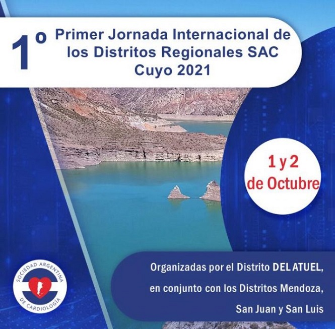 El 1 y 2 de octubre se realizará la “Primera Jornada Internacional de los Distritos SAC Cuyo 2021”. El evento esta organizado por el distrito del Atuel en conjunto con los de Mendoza, San Luis y San Juan. El objetivo principal de los organizadores es ver la atención primaria de la salud cardiovascular, poniendo foco en el presente pero sin dejar de mirar el futuro.