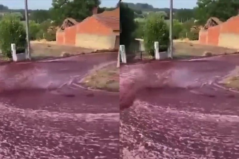 Casi de forma inmediata, la bebida comenzó a fluir por una de las calles del pueblo y se generó un escenario que nadie imaginó. Los habitantes de la zona observaron asombrados por las ventanas de sus casas la actividad de un río de vino tinto.