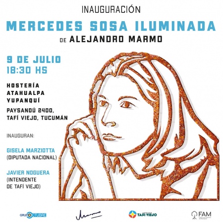 “Mercedes iluminada” fue donada por el Grupo Octubre por iniciativa de la diputada nacional Gisela Marziotta y la Federación Argentina de Municipios (FAM), quienes trabajan junto al municipio de Tafí Viejo para recibir y emplazar este homenaje a la cantora argentina.