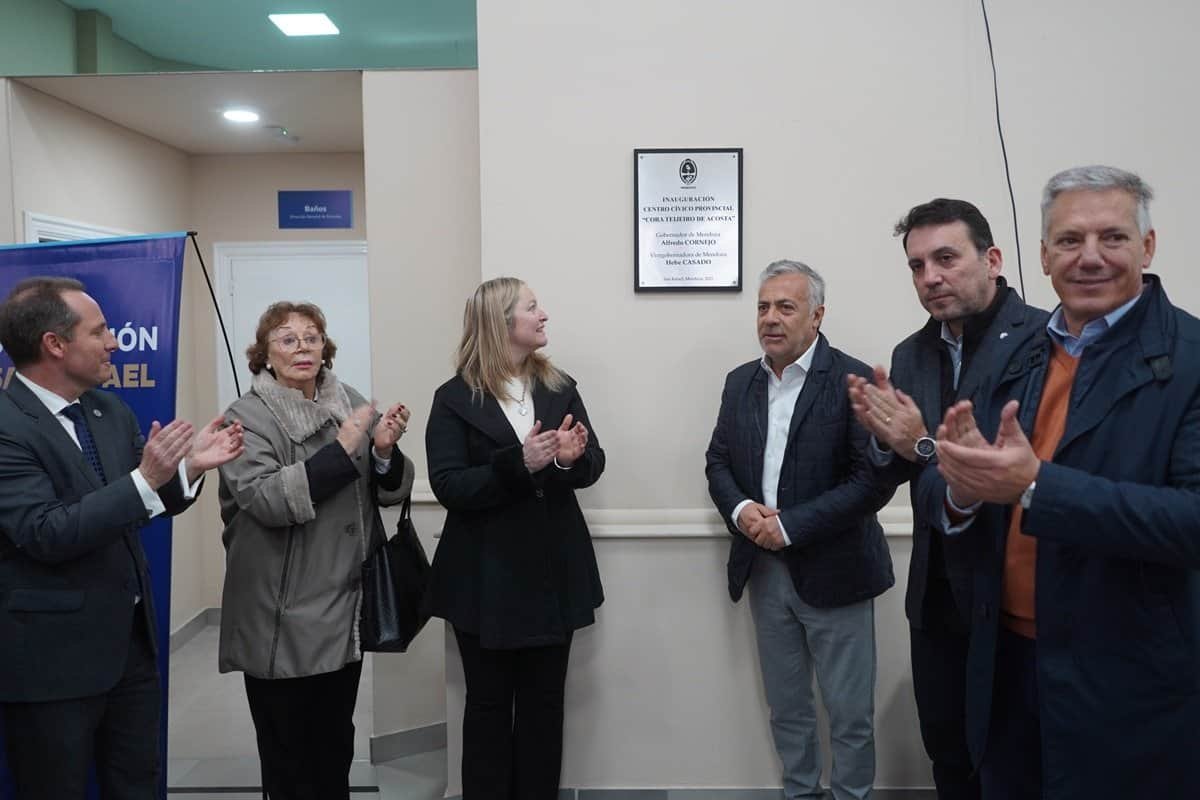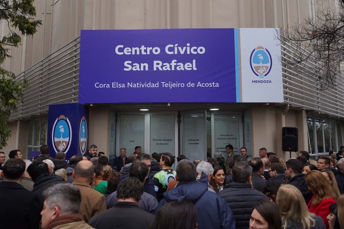 San Rafael cuenta desde hoy con un nuevo Centro Cívico que centraliza servicios provinciales y mejora las condiciones de atención a la ciudadanía. El edificio fue inaugurado oficialmente por el gobernador Alfredo Cornejo, acompañado por la vicegobernadora Hebe Casado y el ministro de Educación, Cultura, Infancias y DGE, Tadeo García Zalazar.