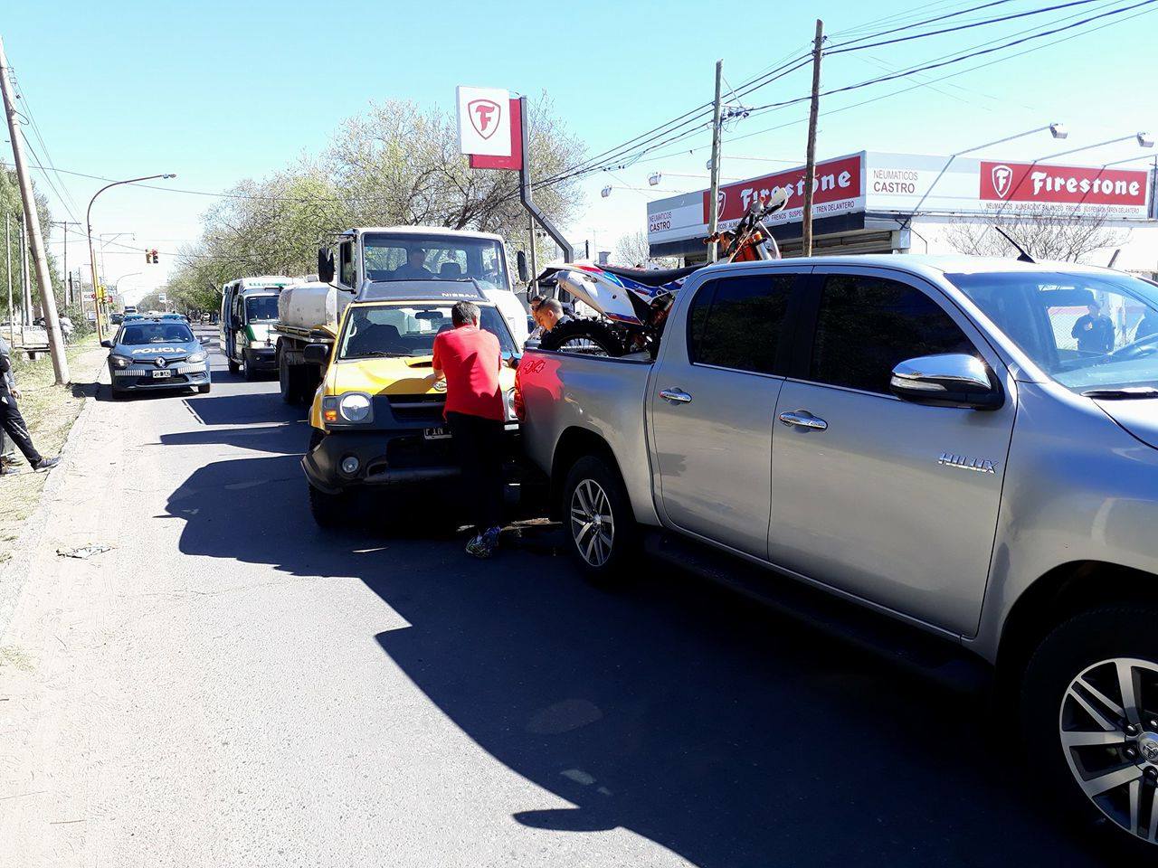 Un camión regador de la municipalidad que circulaba por avenida Alberdi de Oeste a Este, por razones que se tratan de establecer embistió en su parte trasera a un Jeep Nissan lo que provocó que esta impactara contra una Toyota Hilux que marchaba en la misma dirección.