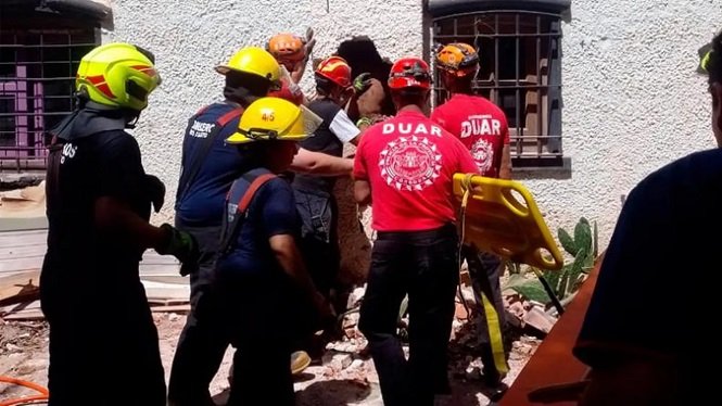 Los rescatistas detallaron que para sacar al hombre atascado fue necesario hacer la apertura de un orificio en la pared. El hombre resultó lesionado, motivo por el cual fue trasladado al hospital para su atención,