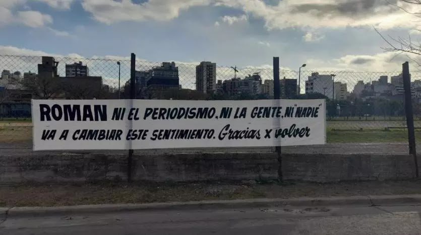 Luego de las polémicas declaraciones del presidente Ameal, esta tarde en casa amarilla volvió a aparecer un cartel pero esta vez en apoyo al vicepresidente Juan Román Riquelme en todos estos conflictos que vive el club azul y oro. “ROMAN ni el periodismo, ni la gente ni nadie va a cambiar este sentimiento. Gracias por volver”.
