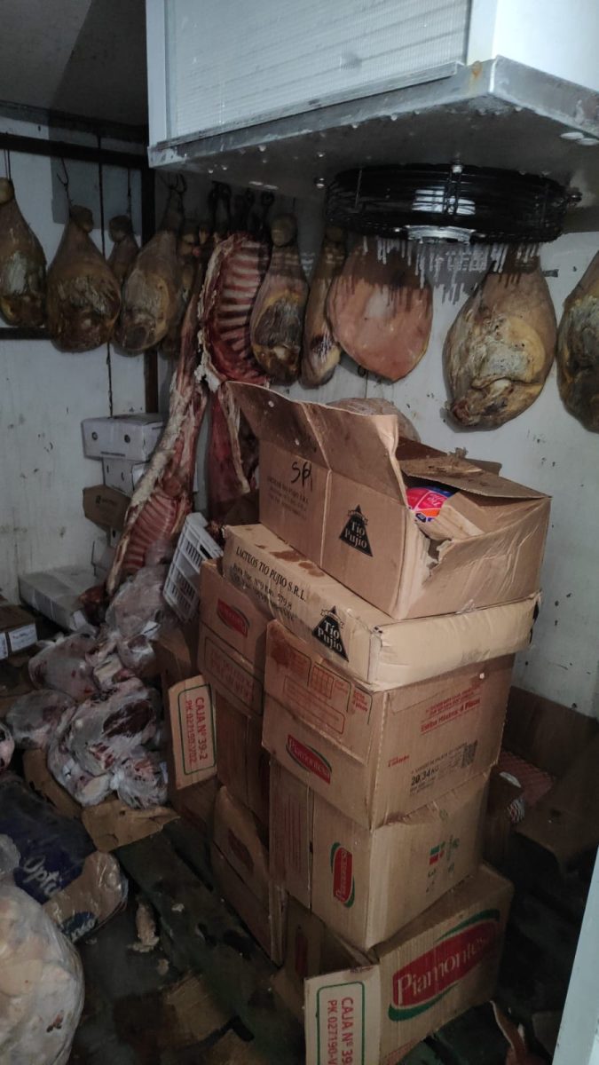 En tanto que, en el segundo domicilio, ubicado en la intersección de calles Tucumán y Leopoldo Suárez, donde apareció el hallazgo más relevante. Allí, sin habilitación visible, funcionaba un depósito de almacenamiento de alimentos. En el interior, la Policía encontró tres cámaras frigoríficas con una gran cantidad de mercadería. En total se decomisaron 2.193,9 kilos de productos entre carne vacuna, porcina, pollo, embutidos y lácteos.