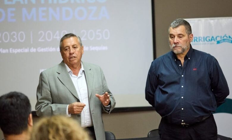 El superintendente de Irrigación, Sergio Marinelli, y el director de Gestión Hídrica, Rubén Villodas, presentaron el Plan Especial de Gestión del Riesgo de Sequía (PEGRIS), que forma parte del Plan Hídrico de la Provincia de Mendoza que se encuentra en elaboración y establece los lineamientos obligatorios y recomendaciones técnicas para la gestión preventiva y proactiva del riesgo de sequías en la provincia al 2050.