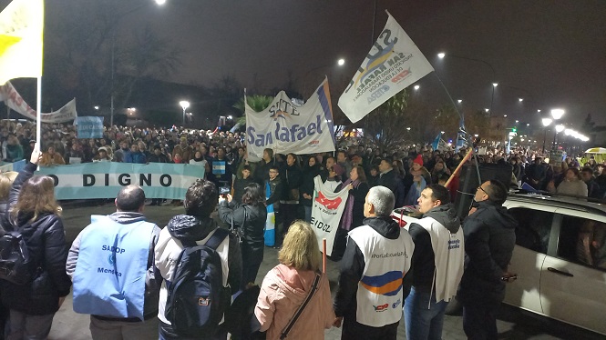 En lo que fue una manifestación realmente histórica en San Rafael, alrededor de 5.500 personas autoconvocadas y de diversos gremios marcharon desde el Kilómetro Cero hasta plaza Francia, portando una bandera de cerca de 350 metros de largo, que ya había sido desplegada durante la marcha –también multitudinaria–que tuvo lugar en la capital provincial. El hartazgo hacia el gobierno de Rodolfo Suárez es cada vez mayor y la prueba está, en el 95% de acatamiento de los docentes al paro. Los trabajadores peores pagos del país, dijeron “basta”.