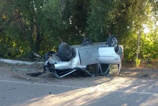 Un automóvil Chevrolet Corsa conducido por un joven de 21 años de edad, volcó chocando un árbol, y cortando cables en el vuelco, lo que produjo cortocircuitos y un principio de incendio que ya fue sofocado.