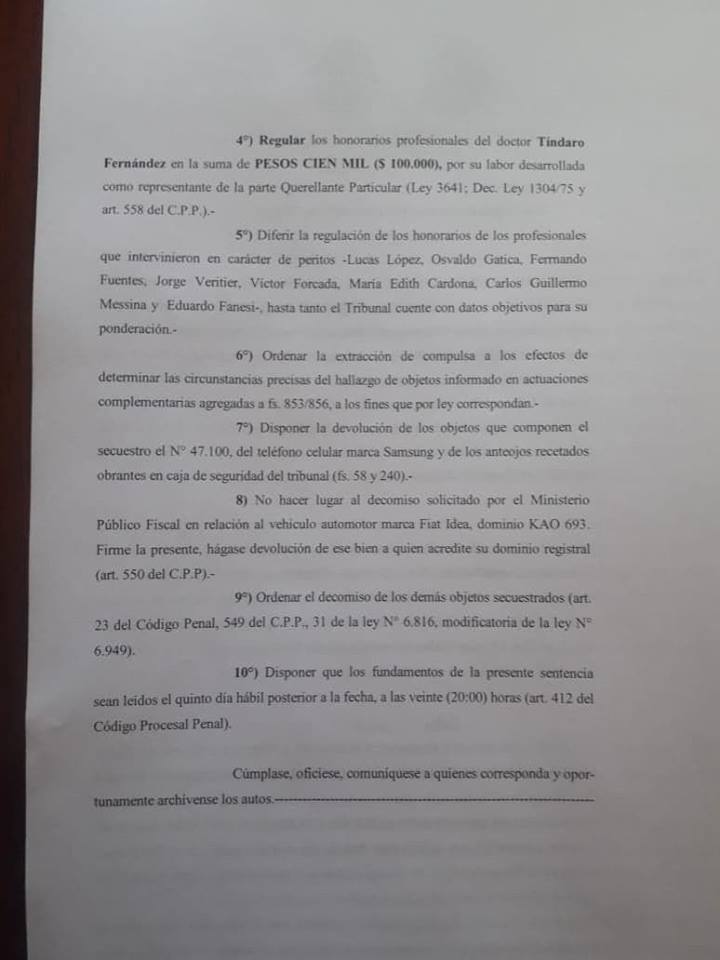 Además de la citada pena, Silva, tiene por delante 8 años de inhabilitación para conducir vehículos automotores, más accesorias legales y costas.