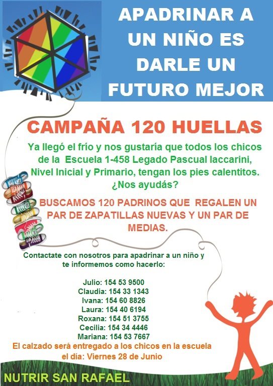 Como parte de la Campaña “120 Huellas” quien acepte ser “padrino” recibirá una carta donde un alumno de esa escuela cuenta por qué quiere un par de zapatillas y el número que calza. Esa carta es parte de un proyecto institucional donde tomando el beneficio de la campaña, los alumnos son evaluados en redacción, ortografía y lectura, en el área de Lengua.