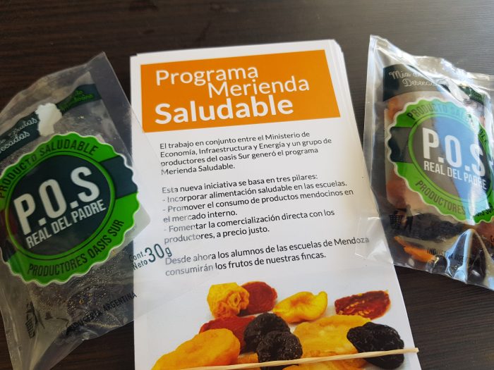 “Estamos haciendo una campaña saludable, esto es un programa con el que queremos lograr un triple impacto: consumir saludablemente (la bolsita equivale a una fruta), incentivar el consumo de nuestros productos y ayudar a los productores a comercializarlos. Estamos muy contentos de ayudar a los productores”, expresó el funcionario mientras repartió algunas bolsitas que contienen 250 g de ciruela, damasco, durazno y pera desecados.