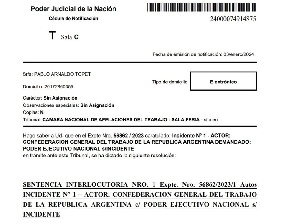 Dictó una medida cautelar que suspende la aplicación de las reformas en materia laboral incluidas por el Poder Ejecutivo en el polémico Decreto de Necesidad y Urgencia (DNU) 70/2023.