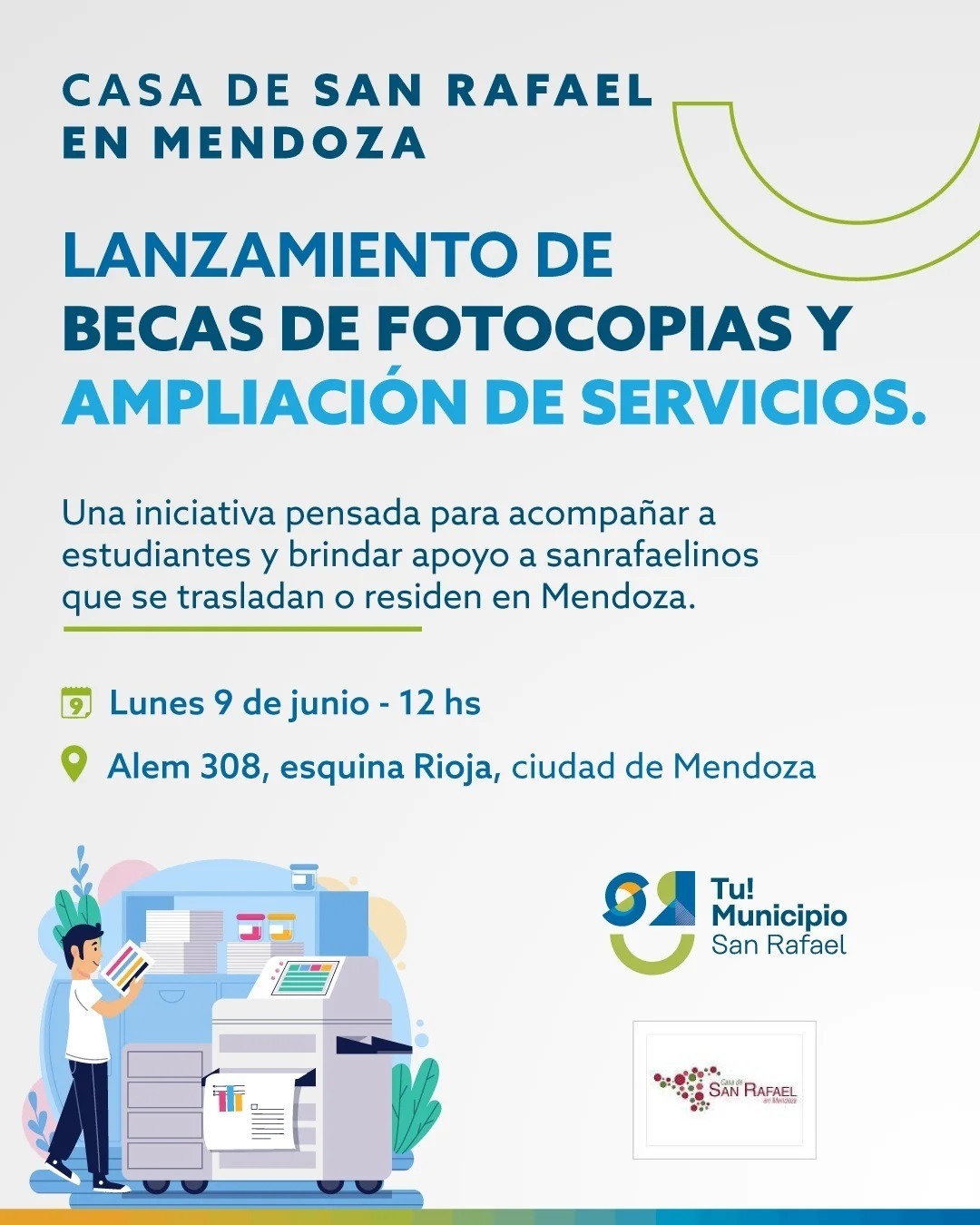 Hay que destacar que también se incorporó el programa de Becas de Fotocopias para sanrafaelinos que se encuentran estudiando carreras de nivel superior. Se trata de un importante apoyo para chicos de terciario y universitario.
