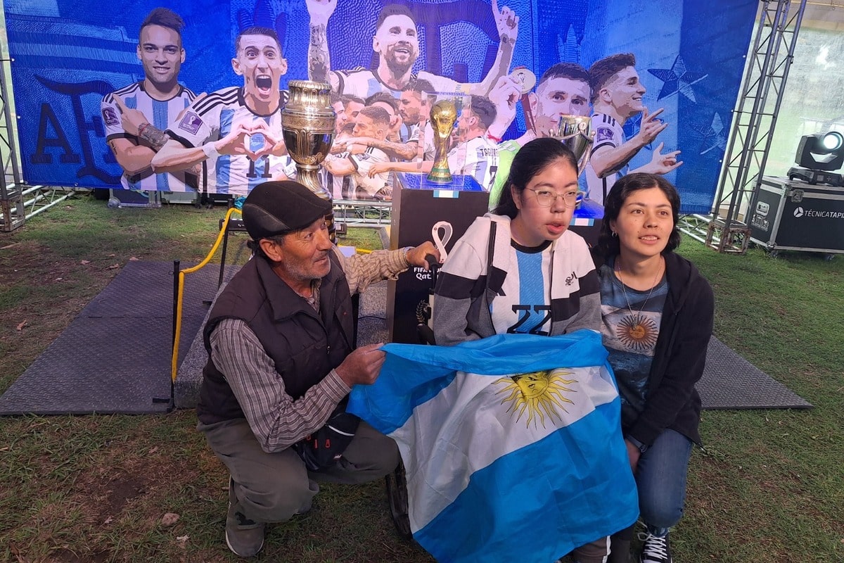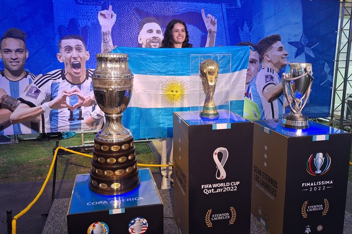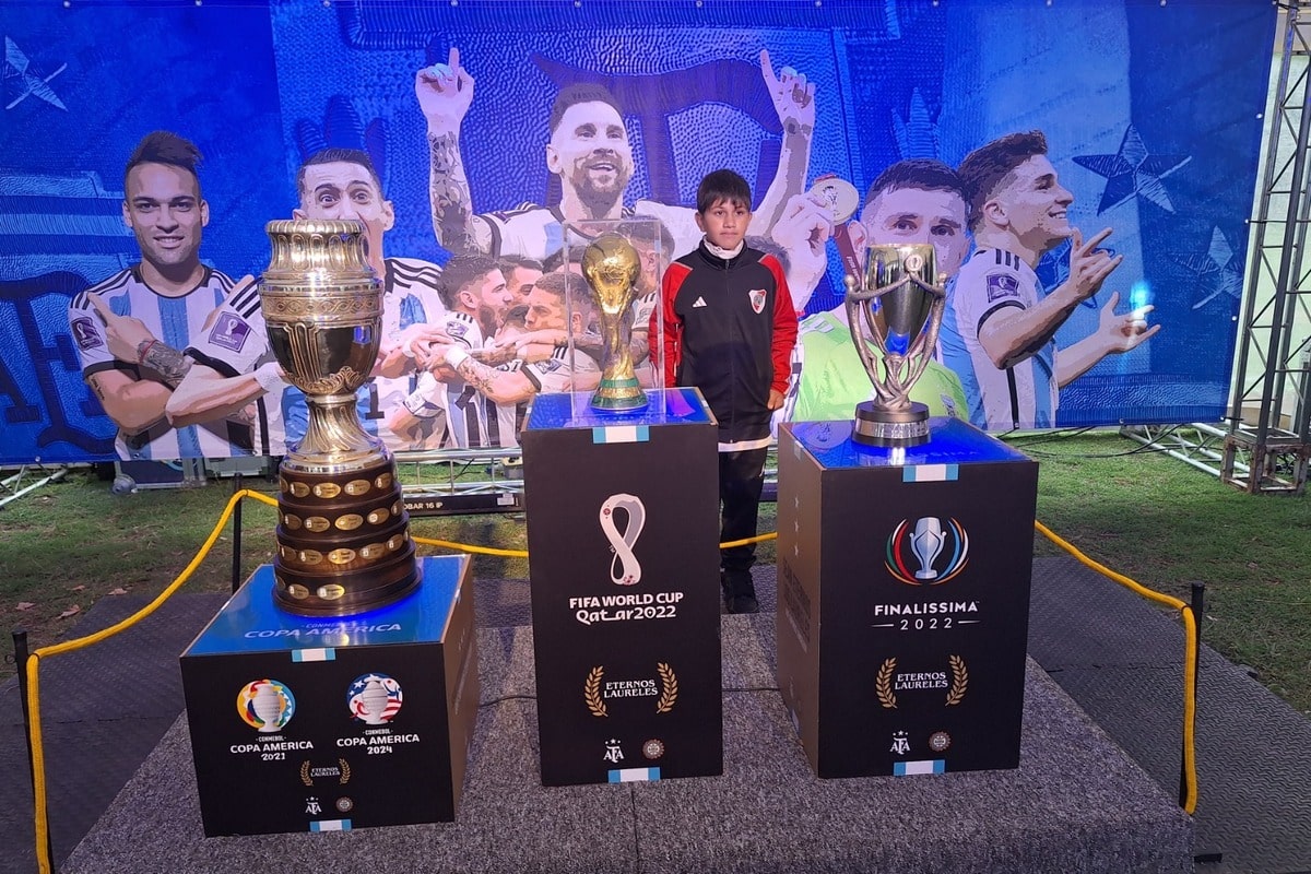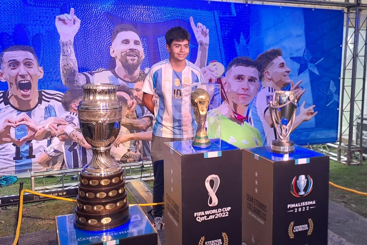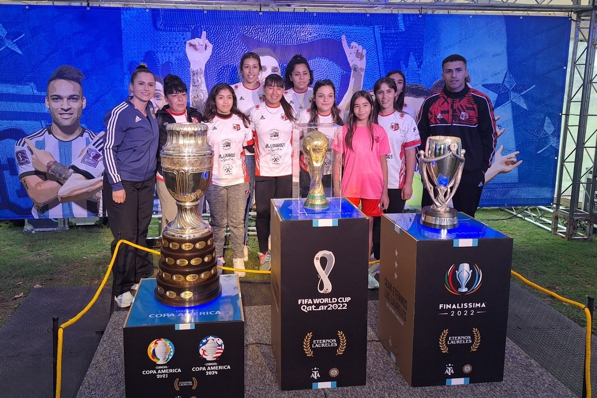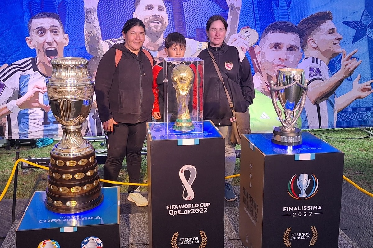 En el mismo predio donde la comuna proyectó el Mundial Qatar 2022 en pantalla gigante desembarcó el trofeo que levantó Lionel Messi hace dos años en el certamen más importante del fútbol.