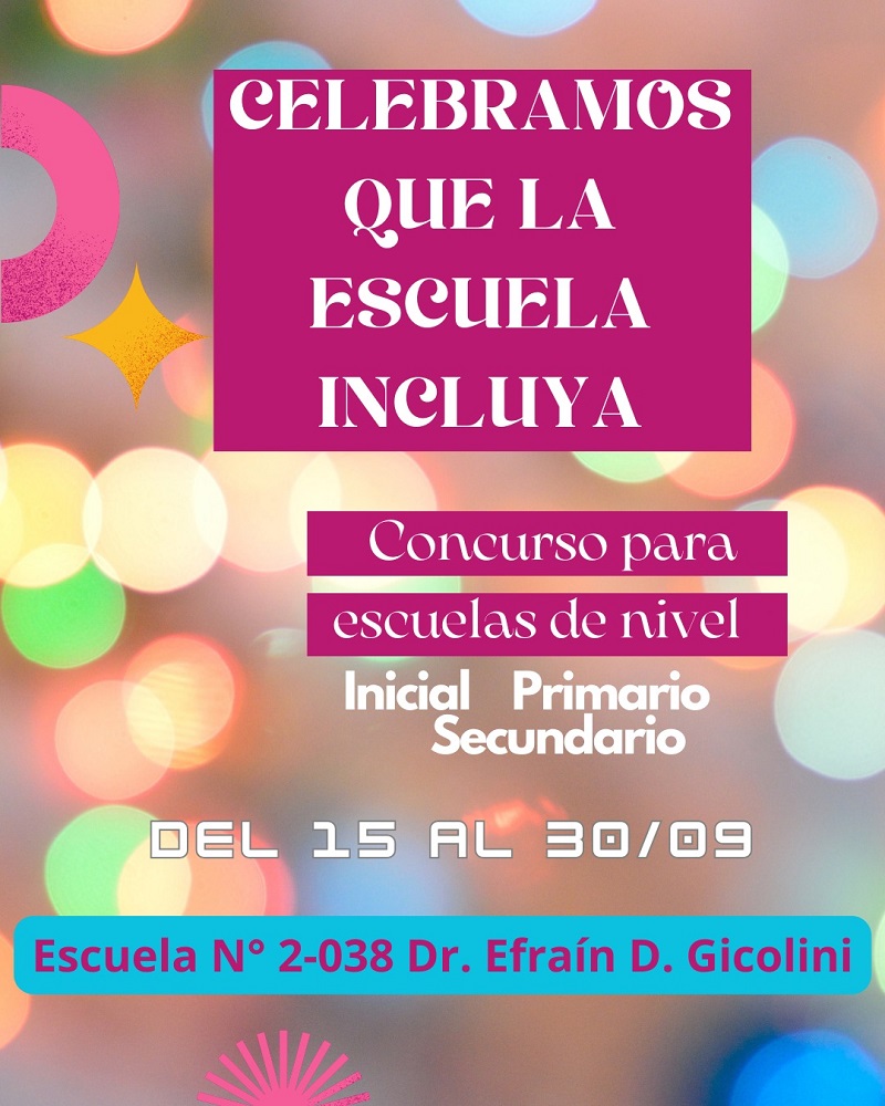 “Celebramos que la escuela incluya” es el nombre del concurso de la escuela 2-038 Doctor Efraín Dante Gicolini, de San Rafael, en el marco de los festejos por los 35 años de su fundación y del mes de la inclusión, con el propósito de visibilizar experiencias inclusivas y sensibilizar a las comunidades educativas sobre la necesaria apertura a la diversidad y su relación con el derecho de todos los alumnos a aprender, y el de todos los ciudadanos a participar en la vida social y desarrollarse en comunidad.